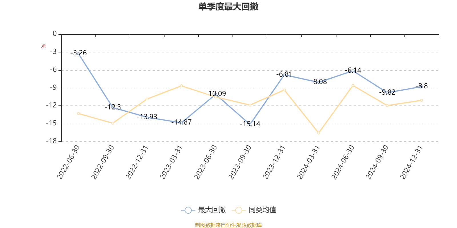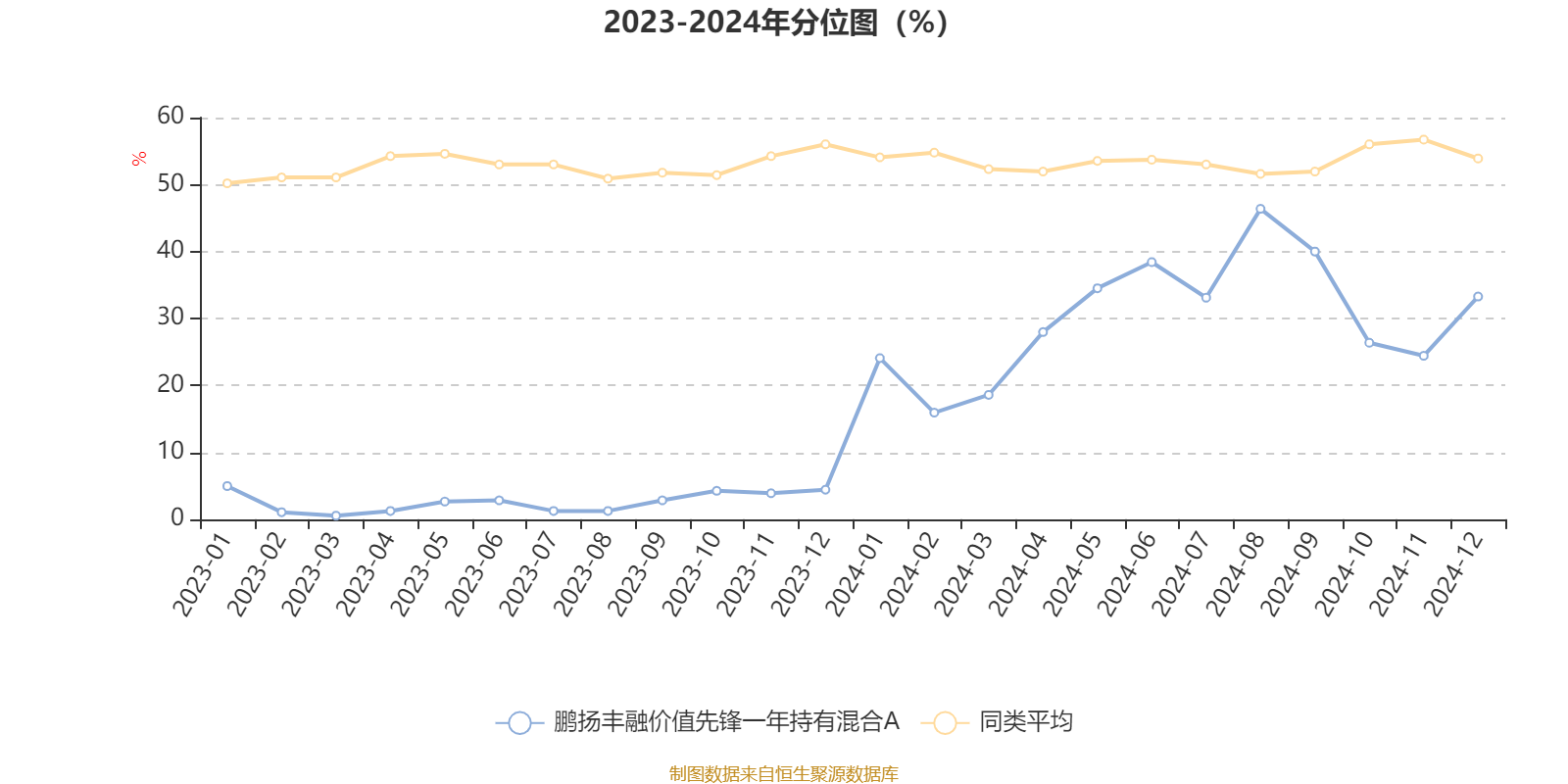 通过所选区间该基金净值增长率分位图,可以观察该基金与同类基金业绩比较情况。图为坐标原点到区间内某时点的净值增长率在同类基金中的分位数。